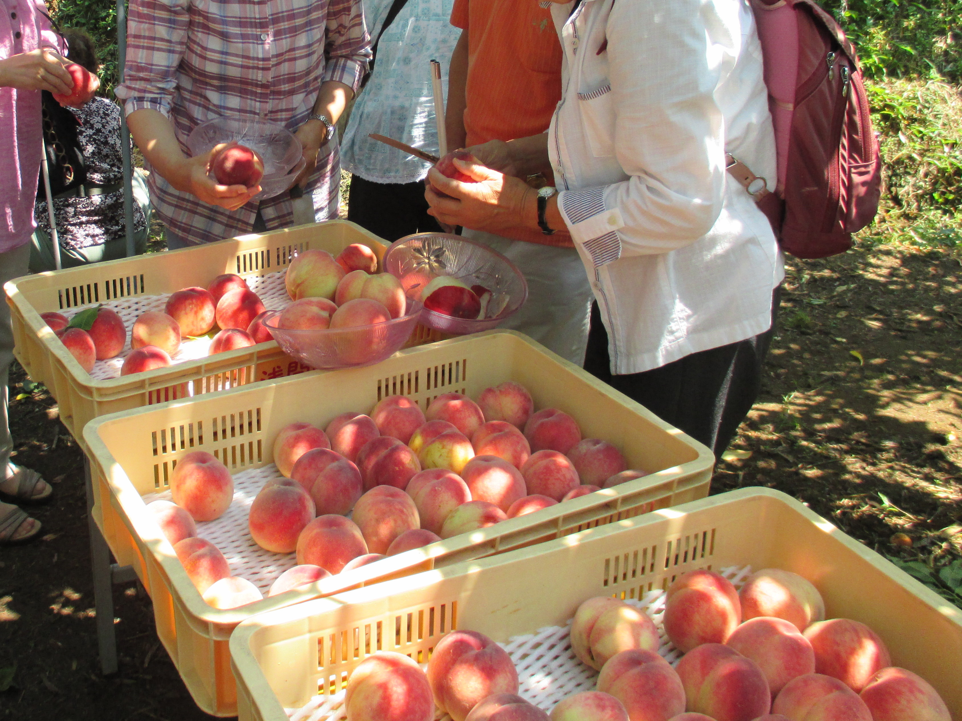 日帰りバスハイク 実施日:平成26年7月15日(火)、出発9:00 帰着15:40 行き先:浅間園、山梨県笛吹市一宮町東新居600 参加対象:事業所登録の利用者・ガイドヘルパー 参加者数:利用者・ガイド22組、44名と職員2名、計46名 |